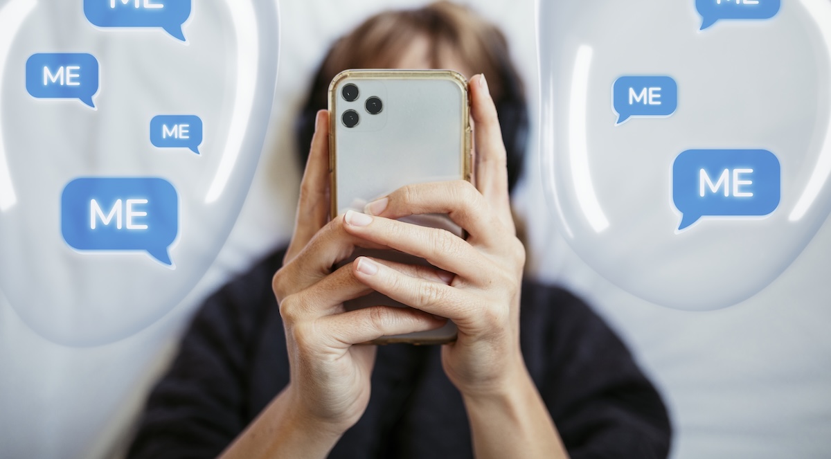 Social addicted woman texting with speech bubbles graphic